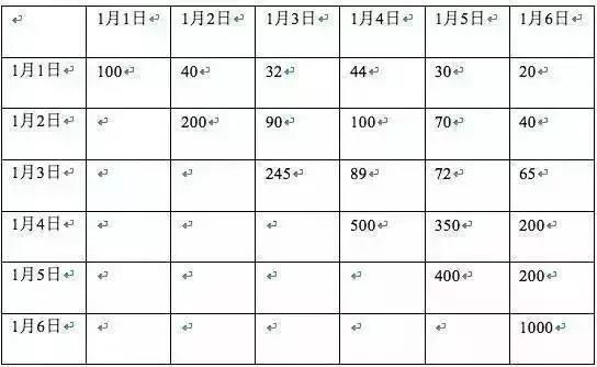 以此類推,1月3日獲取的新用戶有一個(gè)留存狀況、1月4日5日···以后每天都有一個(gè)留存表格。把這些表格放在一起,就是一個(gè)巨大的斜對角矩陣: