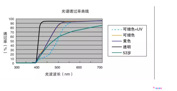 非球面透明類(lèi)人工晶狀體,擁有紫外線UV濾過(guò)功能,保護(hù)人眼免受紫外線的損害。390nm以下透過(guò)率≤10%。此外,蕾明視康正在研發(fā)黃色類(lèi)和可增色類(lèi)(黃色)人工晶狀體。黃色類(lèi)人工晶狀體除了UV濾過(guò)外,還濾過(guò)部分短波藍(lán)光,降低視網(wǎng)膜損傷??稍錾?lèi)(黃色)人工晶狀體除了UV濾過(guò),還可調(diào)節(jié)黃顏色的深淺從而調(diào)節(jié)短波藍(lán)光的濾過(guò)量,保護(hù)視網(wǎng)膜的同時(shí),又提高暗室環(huán)境下視覺(jué)質(zhì)量。