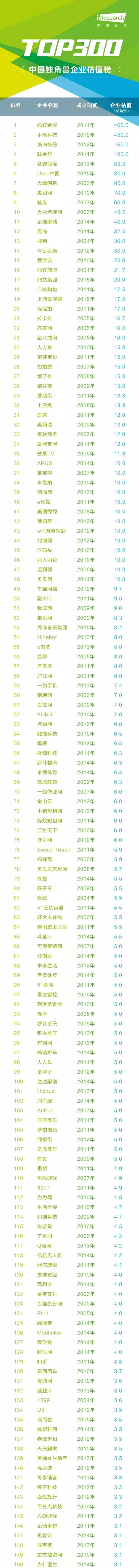 注 · 由于公開數(shù)據(jù)的透明度和準(zhǔn)確性問題,部分企業(yè)的估值可能存在誤差,部分符合上榜要求的企業(yè)可能被遺漏。