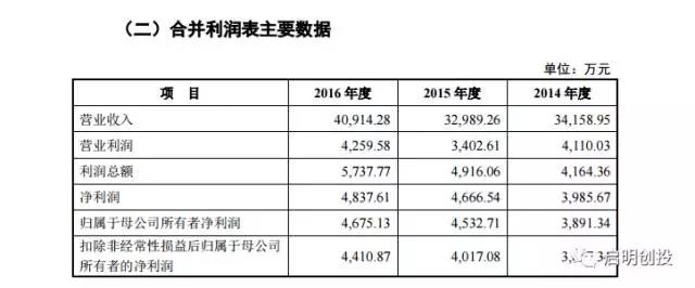 作為一家創(chuàng)新型的水環(huán)境服務(wù)商,中持水務(wù)的前身中持(北京)水務(wù)運(yùn)營有限公司成立于2009年12月。從今年3月中持水務(wù)發(fā)布的招股說明書可知,近年來,該公司的發(fā)展逐漸成熟起來,總體呈平穩(wěn)上升的態(tài)勢。從2014年、2015年、2016年三個(gè)自然年度的營收的數(shù)據(jù)走勢來看,中持水務(wù)的營收從2014年的3.4億元增至2016年的4.1億元;凈利潤方面也穩(wěn)步上升,從2014年的3985.7萬元增至2016年的4837.6萬元,增幅為17.6%。具體的財(cái)務(wù)數(shù)據(jù)詳見下圖: