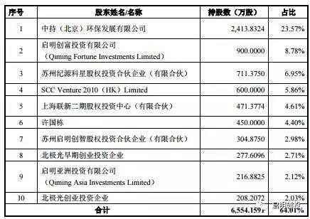 本次發(fā)行完成后,總股本為10243.80萬股,上市之前的股東戶數(shù)為26734名,其中前十大股東持股量占總股本的64.01%。像啟明創(chuàng)投、紅杉資本中國基金、北極光創(chuàng)投等均位列十大股東,以下是本次發(fā)行后中持水務(wù)前十名股東名單: