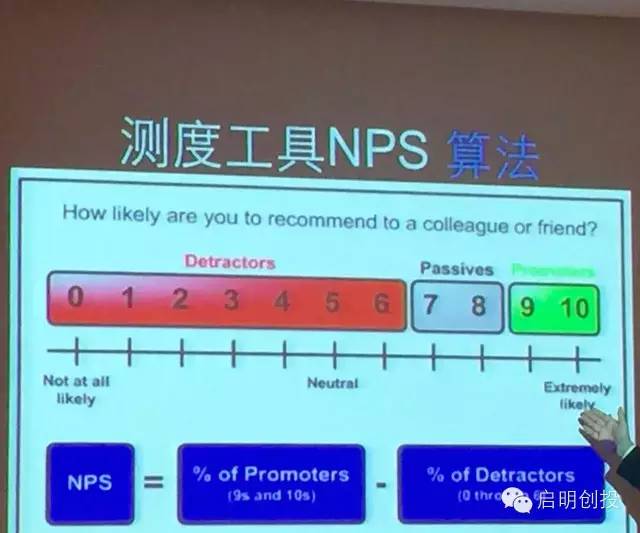 最后,談一下社群營(yíng)銷(xiāo)。有了好的產(chǎn)品自然會(huì)帶來(lái)好的口碑,甚至帶來(lái)粉絲。除了4百萬(wàn)的微信公眾號(hào)用戶,羅輯思維還有6萬(wàn)的付費(fèi)會(huì)員,他們是一群愛(ài)學(xué)習(xí)的人,經(jīng)常會(huì)自發(fā)的組織一些活動(dòng),幫助羅輯思維擴(kuò)散品牌。這種社群不容易形成,我覺(jué)得這是羅輯思維的成功。我們最近也投資了一家做最后一公里配送的公司,叫鄰趣。他們讓你要什么都可以立刻要,鄰趣小哥幫你送。用戶體驗(yàn)非???,使得用戶自然向周邊的朋友推薦,節(jié)省了不少?gòu)V告和補(bǔ)貼費(fèi)用。我建議創(chuàng)業(yè)者測(cè)試一下自己的產(chǎn)品的尖叫指數(shù),也叫NPS(Net Promoter Score),這個(gè)比簡(jiǎn)單的滿意度調(diào)查好很多。