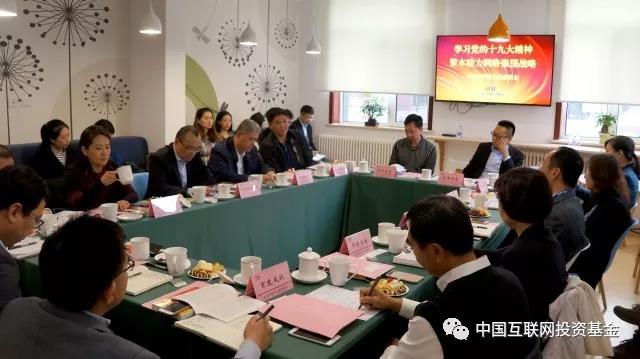 11月6日下午,中國(guó)互聯(lián)網(wǎng)投資基金的沙龍室里,氣氛輕松而熱烈。十家知名互聯(lián)網(wǎng)投資機(jī)構(gòu)負(fù)責(zé)人共聚一堂,圍繞學(xué)習(xí)貫徹十九大精神,談體會(huì)、談心得,把茶話未來(lái),共商資本助力網(wǎng)絡(luò)強(qiáng)國(guó)戰(zhàn)略大計(jì)。這十家投資機(jī)構(gòu)分別是中國(guó)互聯(lián)網(wǎng)投資基金、中移資本、紅杉資本、寬帶資本、中科招商、百度風(fēng)投、中信國(guó)安基金、金沙江創(chuàng)投、啟明創(chuàng)投、真格基金,管理資金總規(guī)模合計(jì)超過(guò)4300億。