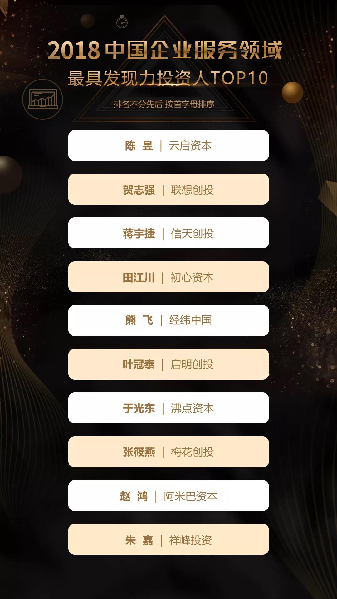 啟明創(chuàng)投合伙人葉冠泰先生榮獲“2018中國(guó)企業(yè)服務(wù)領(lǐng)域最具發(fā)現(xiàn)力投資人Top10”。
