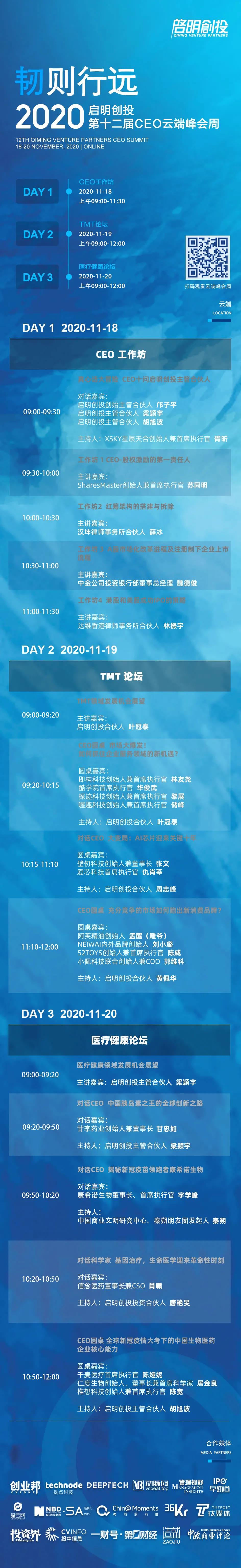 2020年11月18-20日,啟明創(chuàng)投歡迎您加入2020啟明創(chuàng)投第十二屆CEO云端峰會(huì)周,激蕩思想,共赴明日。