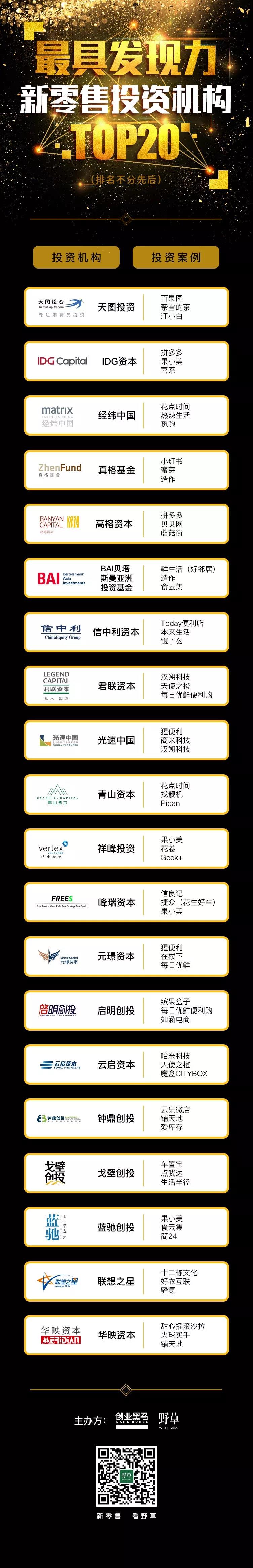 以下是最具發(fā)現(xiàn)力新零售投資機構(gòu)榜單: