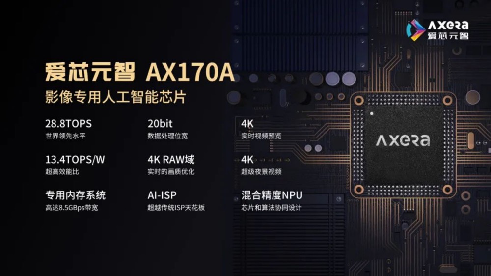 AX170A是一款影像專用的AI處理芯片,具有愛芯元智系列產品一以貫之的高算力、高效能比技術特點,可為手機用戶帶來極致的拍攝體驗。得益于算法和硬件的聯(lián)合優(yōu)化以及片上緩存的高效利用,AX170A具備高達13.4TOPS/W的超高效能比,在業(yè)內達到領先水平。此外,該芯片獨有的20bit處理位寬可以輕松完成4K夜景視頻的預覽和拍攝。