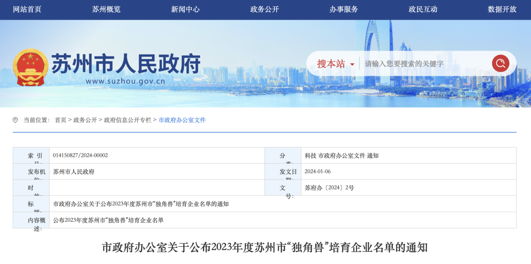為深入實(shí)施創(chuàng)新驅(qū)動發(fā)展戰(zhàn)略,加快完善創(chuàng)新型企業(yè)培育體系,培育壯大創(chuàng)新型企業(yè)集群,根據(jù)《關(guān)于支持產(chǎn)業(yè)創(chuàng)新集群建設(shè)的若干政策(試行)》(蘇委辦發(fā)〔2022〕6號)文件,經(jīng)組織申報(bào)、各地推薦、專家評審、現(xiàn)場答辯、信用審查、網(wǎng)站公示等規(guī)范程序,蘇州市人民政府辦公室評定2023年度蘇州市“獨(dú)角獸”培育企業(yè)。