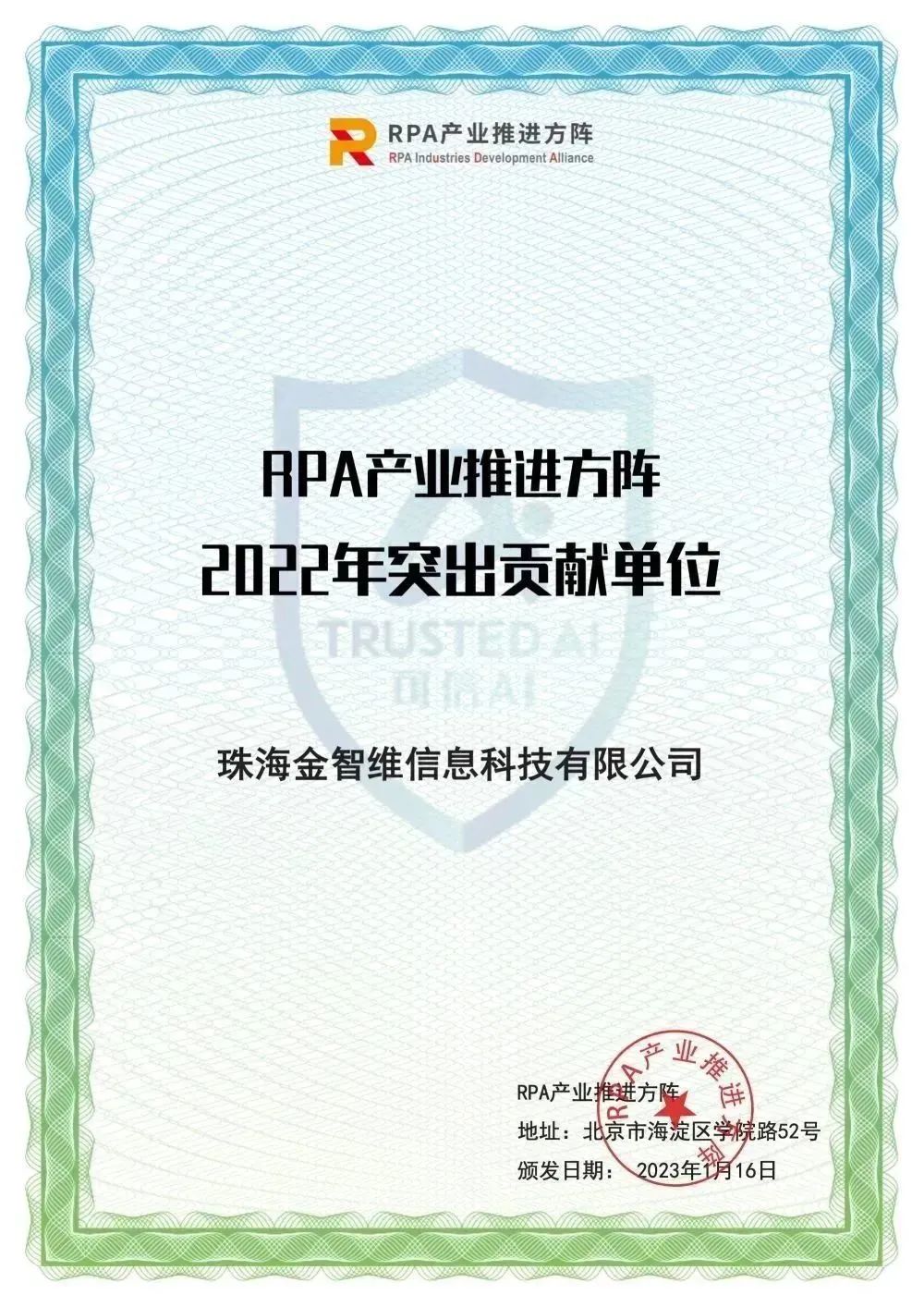金智維獲評(píng)RPA產(chǎn)業(yè)推進(jìn)方陣