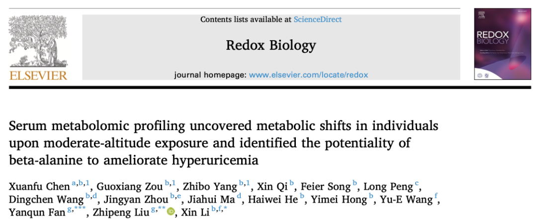 近日,由廣東省醫(yī)療援藏首席專家、廣東省人民醫(yī)院急診科李欣教授牽頭,啟明創(chuàng)投投資企業(yè)百趣生物代謝組學(xué)技術(shù)研究中心劉志鵬研究員團(tuán)隊,以及林芝市人民醫(yī)院等多家單位在國際著名學(xué)術(shù)期刊Redox Biology上發(fā)表了論文。
