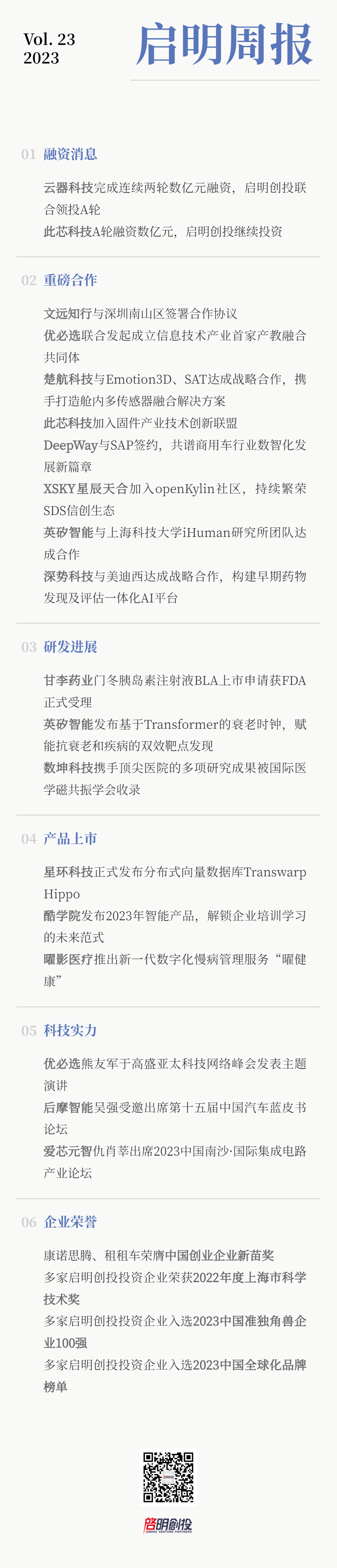 編者按:“啟明周報(bào)”欄目會在每周定期發(fā)布,盤點(diǎn)啟明創(chuàng)投投資企業(yè)的融資新聞、發(fā)展動態(tài)。