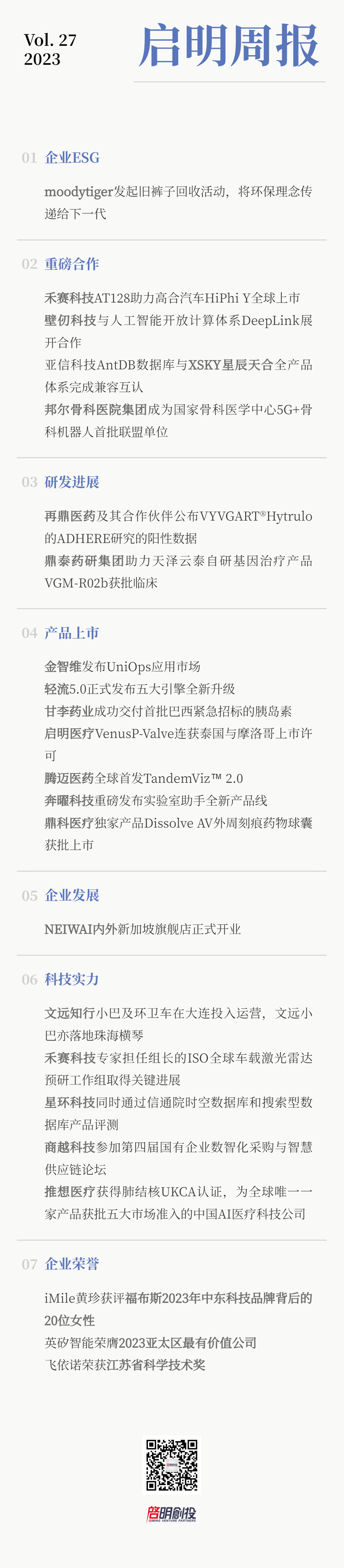 編者按:“啟明周報”欄目會在每周定期發(fā)布,盤點啟明創(chuàng)投投資企業(yè)的融資新聞、發(fā)展動態(tài)。
