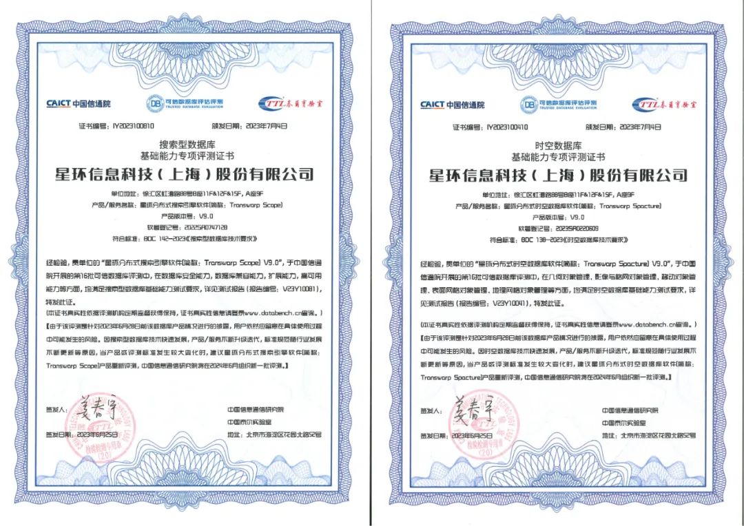 星環(huán)科技同時通過信通院時空數(shù)據(jù)庫