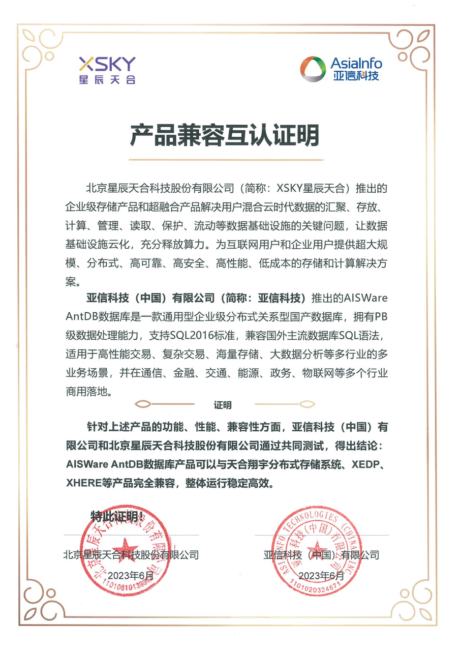亞信科技AntDB數(shù)據(jù)庫與XSKY星辰天合
