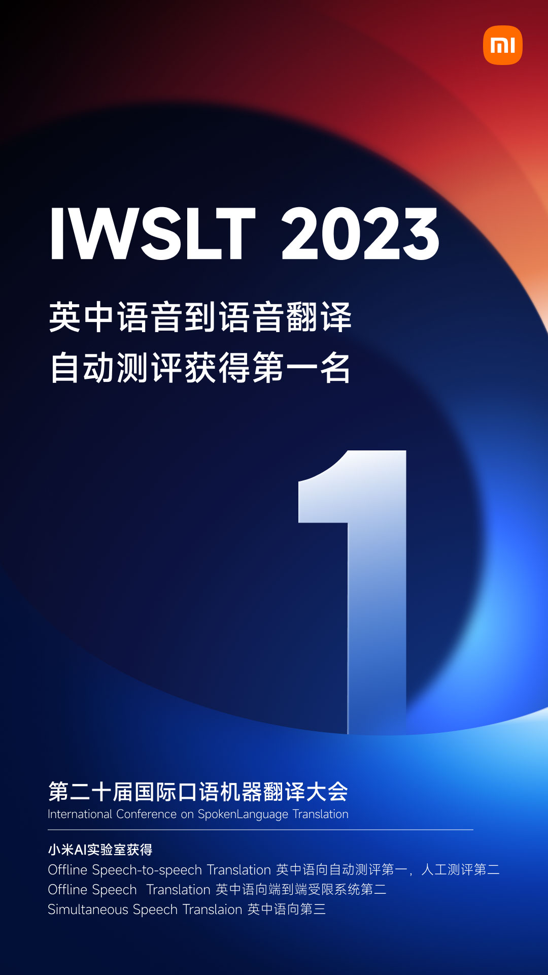 近日,第二十屆國(guó)際口語(yǔ)機(jī)器翻譯大會(huì)(IWSLT)在加拿大多倫多舉辦。啟明創(chuàng)投投資企業(yè)小米集團(tuán)(01810.HK)的AI實(shí)驗(yàn)室憑借其領(lǐng)先的技術(shù)優(yōu)勢(shì),獲得“非實(shí)時(shí)英中語(yǔ)音到語(yǔ)音翻譯”自動(dòng)測(cè)評(píng)第一名;同時(shí),在“非實(shí)時(shí)英中語(yǔ)音到文本”、“實(shí)時(shí)英中語(yǔ)音到文本”評(píng)選中也取得了新的突破。