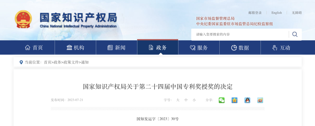 第二十四屆中國(guó)專利獎(jiǎng)多項(xiàng)大獎(jiǎng)