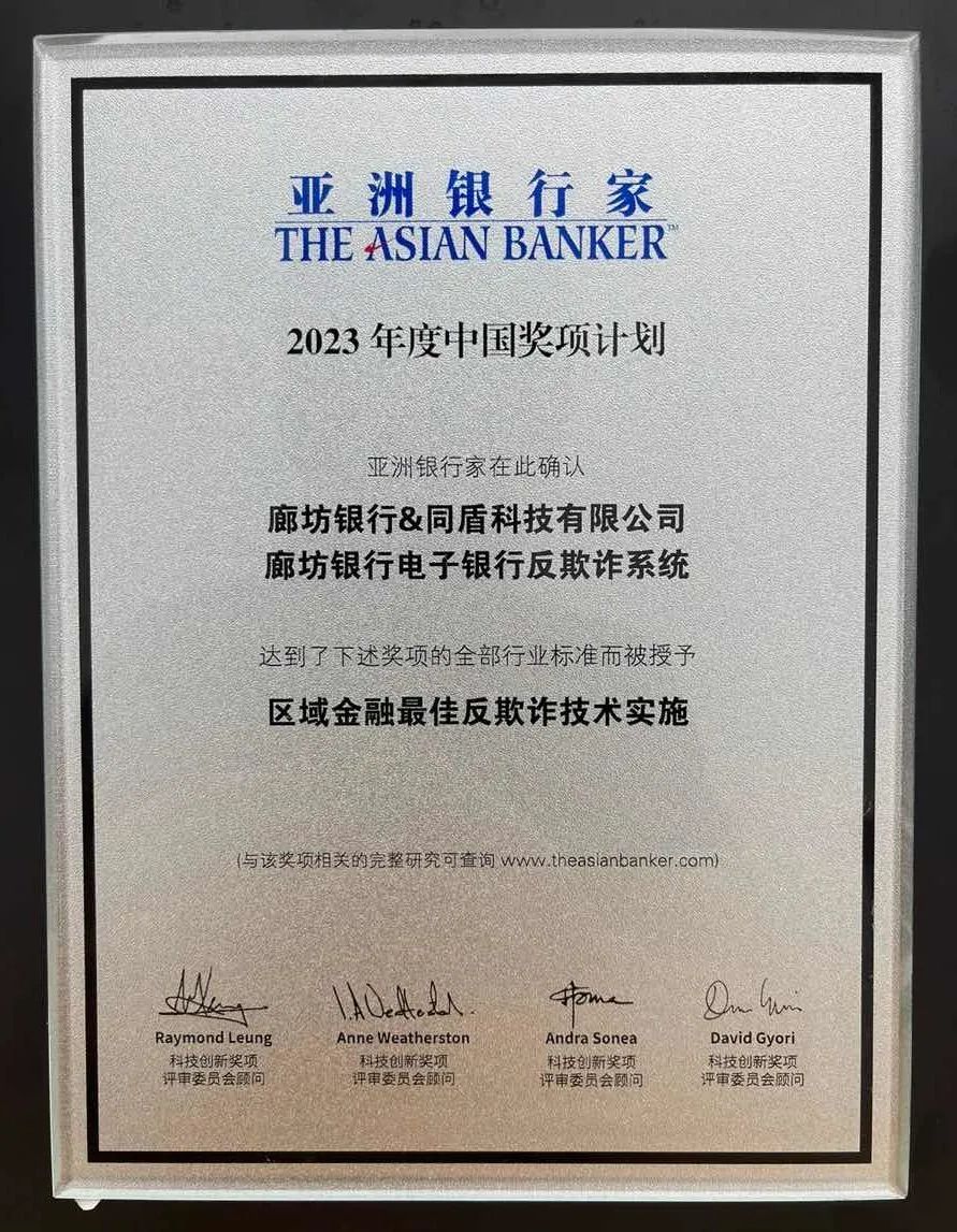 《亞洲銀行家》對(duì)同盾科技和廊坊銀行在技術(shù)嫻熟度和打擊欺詐方面的卓越能力給予了高度評(píng)價(jià),稱該系統(tǒng)解決了金融交易場(chǎng)景中普遍存在的如個(gè)人隱私泄露、識(shí)別網(wǎng)絡(luò)釣魚和數(shù)據(jù)庫(kù)攻擊的困難、驗(yàn)證客戶和終端身份的挑戰(zhàn)、應(yīng)用程序中自衛(wèi)措施不足等問(wèn)題。