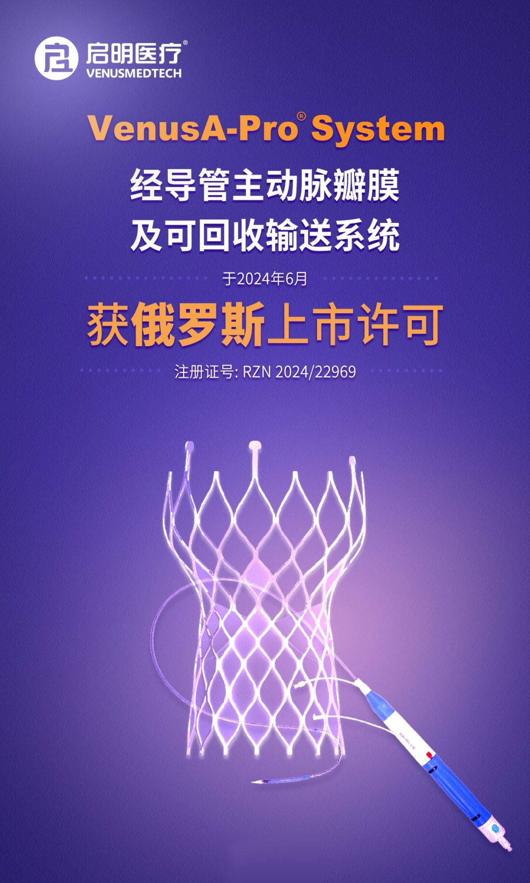 日前,啟明創(chuàng)投投資企業(yè)啟明醫(yī)療(02500.HK)宣布其VenusA-Pro經(jīng)導管主動脈瓣膜及可回收輸送系統(tǒng)獲俄羅斯上市許可。