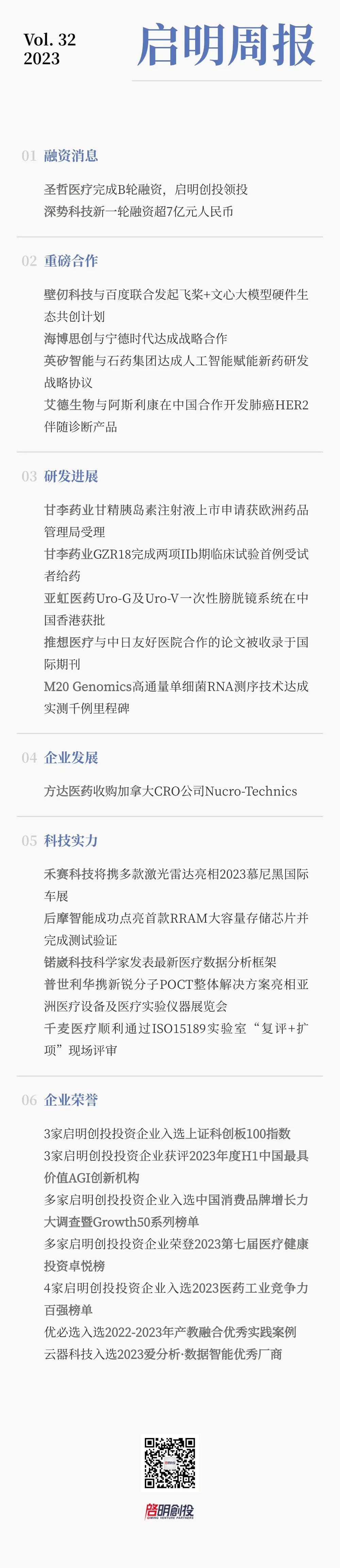 編者按:“啟明周報(bào)”欄目會(huì)在每周定期發(fā)布,盤點(diǎn)啟明創(chuàng)投投資企業(yè)的融資新聞、發(fā)展動(dòng)態(tài)。