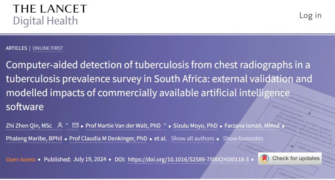 日前,由遏制結(jié)核病全球合作伙伴組織(Stop TB Partnership)的秦至臻教授牽頭,啟明創(chuàng)投投資企業(yè)推想醫(yī)療等業(yè)內(nèi)頂級(jí)AI醫(yī)療公司參與,利用人工智能技術(shù)診斷肺結(jié)核疾病的重磅科研成果發(fā)表于國際知名數(shù)字醫(yī)療期刊《柳葉刀·數(shù)字健康》(THE LANCET Digital Health)。