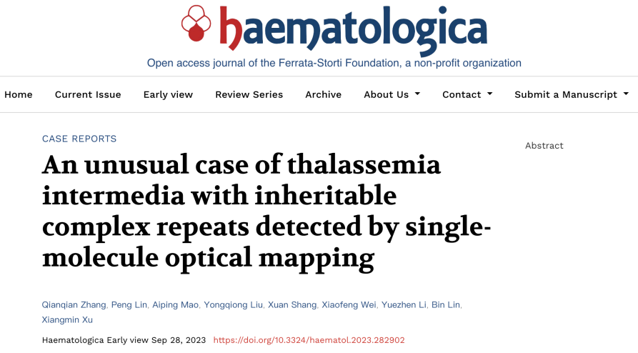近日,南方醫(yī)科大學(xué)南方醫(yī)院地中海貧血防治創(chuàng)新研究中心聯(lián)合啟明創(chuàng)投投資企業(yè)貝瑞基因(000710.SZ)在國(guó)際血液學(xué)頂級(jí)期刊Haematologica(IF=11.049)發(fā)表了題為An unusual case of thalassemia intermedia with inheritable complex repeats detected by single-molecule optical mapping的論文。