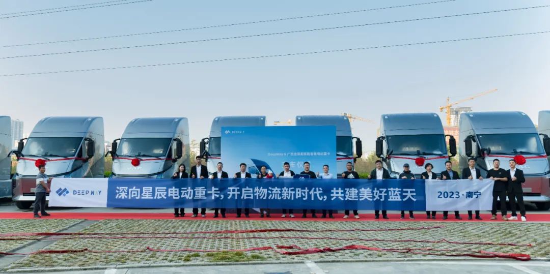 此次交付儀式的成功舉辦,讓廣西地區(qū)及周邊客戶更加近距離了解DeepWay·深向星辰智能新能源重卡與傳統(tǒng)重卡及“油改電”重卡完全不同的運營體驗與技術(shù)革新,進一步推進了整個廣西地區(qū)電動化發(fā)展進度。作為卡車造車新勢力中第一個實現(xiàn)量產(chǎn)交付的重卡企業(yè),DeepWay不僅為物流運輸行業(yè)帶來顛覆性創(chuàng)新運輸方案,更為客戶全產(chǎn)業(yè)鏈商業(yè)模式的建立提供了充分助力。