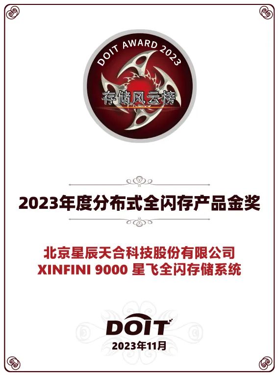 日前,由DOIT傳媒主辦的“2023 中國數(shù)據(jù)與存儲峰會”在北京召開,同期也發(fā)布了2023年度存儲風(fēng)云榜,啟明創(chuàng)投投資企業(yè)XSKY星辰天合的星飛XINFINI 9000全閃分布式存儲系統(tǒng)憑借領(lǐng)先的架構(gòu)設(shè)計和卓越的性能,榮獲了2023年度分布式全閃存產(chǎn)品金獎。