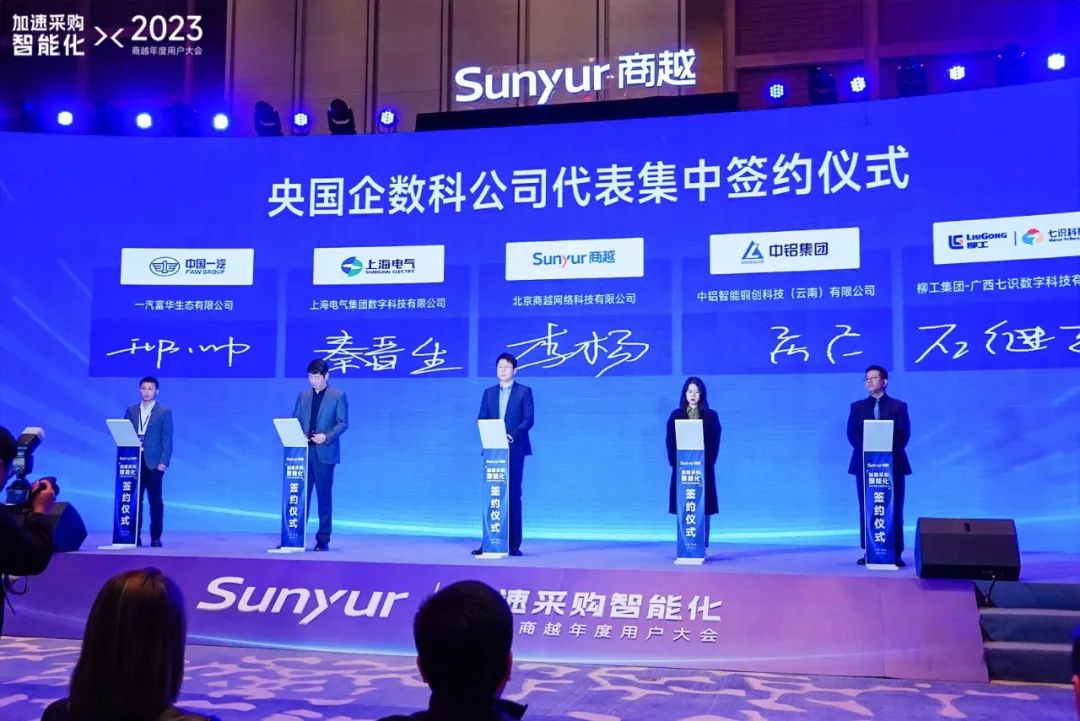 在以“加速采購智能化”為主題的商越科技年度用戶大會上,中國一汽富華生態(tài)有限公司、上海電氣集團數(shù)字科技有限公司、中鋁智能銅創(chuàng)科技有限公司、柳工集團七識數(shù)字科技有限公司作為數(shù)科領(lǐng)域央企、國企代表與啟明創(chuàng)投投資企業(yè)商越科技進行集中簽約。