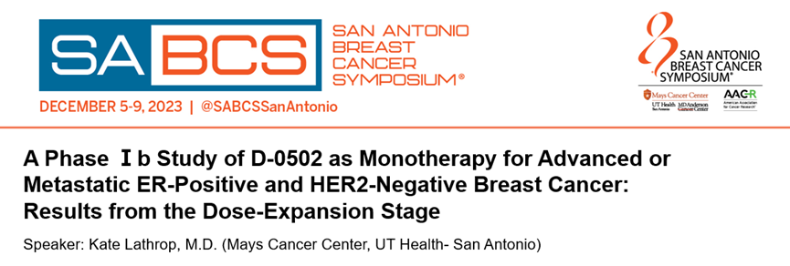 發(fā)表D-0502單藥治療的Ib期研究結(jié)果