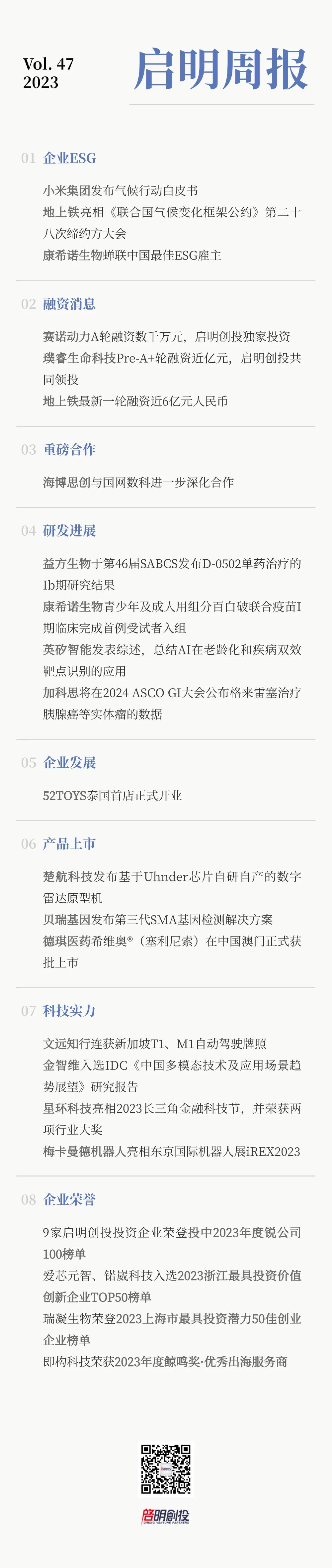 在科技與創(chuàng)新的浪潮中,創(chuàng)業(yè)者的每一步都值得記錄。啟明創(chuàng)投將一如既往地為創(chuàng)業(yè)者加速賦能,并和你一起關(guān)注啟明創(chuàng)投投資企業(yè)的里程碑時(shí)刻。