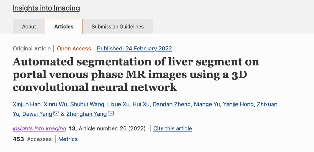 研究論文Automated segmentation of liver segment on portal venous phase MR images using a 3D convolutional neural network發(fā)表于全球權(quán)威的醫(yī)學影像雜志Insights into Imaging。該項研究采用了基于多序列的3D卷積神經(jīng)網(wǎng)絡(luò)模型,由數(shù)坤科技自主研發(fā),用于肝臟MR圖像的精準分割。