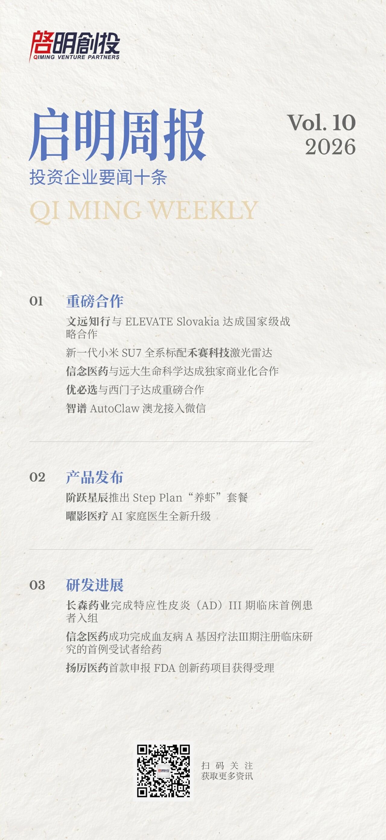 編者按:2026年,《啟明周報(bào)》升級(jí)煥新,每周定期更新,僅精選啟明創(chuàng)投投資企業(yè)的十條重磅動(dòng)態(tài),涵蓋融資進(jìn)展與發(fā)展突破等。
