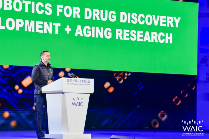 在WAIC產(chǎn)業(yè)發(fā)展全體會(huì)議上,英矽智能創(chuàng)始人兼首席執(zhí)行官Alex Zhavoronkov博士以“生成式人工智能和機(jī)器人技術(shù):用于藥物發(fā)現(xiàn)、生物標(biāo)志物開發(fā)和老齡化研究”為題發(fā)表專題演講。