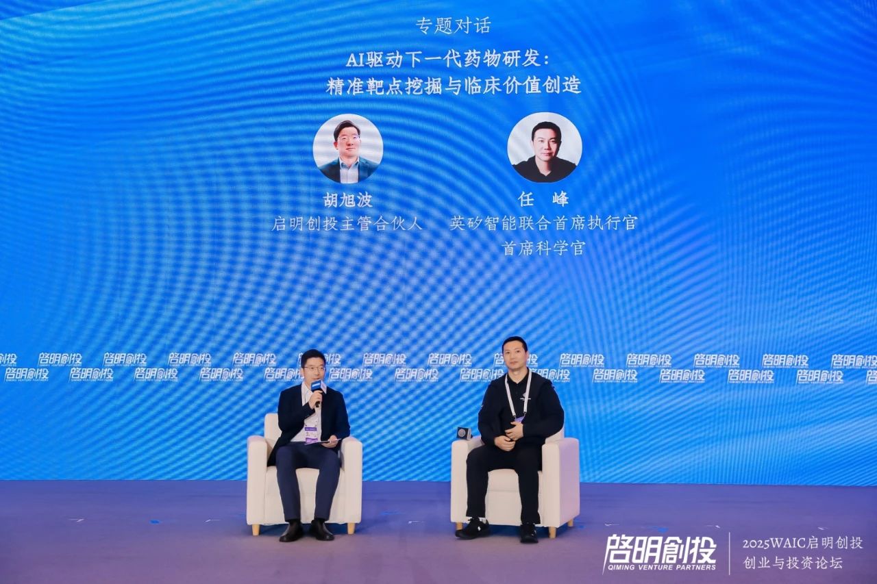 啟明創(chuàng)投主管合伙人胡旭波(左)和英矽智能聯(lián)合首席執(zhí)行官兼首席科學(xué)官任峰(右)