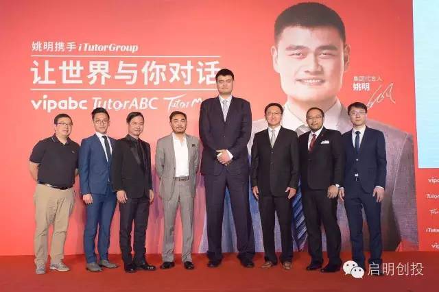 啟明主管合伙人甘劍平(左四)與姚明及iTutor高管在儀式上的合影