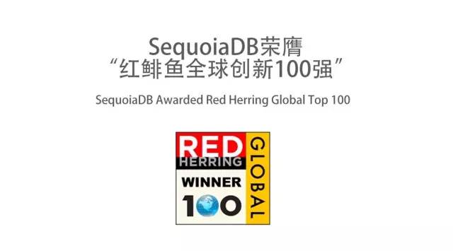 2015年11月19日,由全球最具影響力的商業(yè)和創(chuàng)新媒體,《紅鯡魚》(RedHerring)頒發(fā)的,全球創(chuàng)新大獎(Red Herring Global Top100)。SequoiaDB巨杉數(shù)據(jù)庫,憑借高速的發(fā)展和領(lǐng)先的創(chuàng)新,斬獲殊榮,躋身全球創(chuàng)新100強。