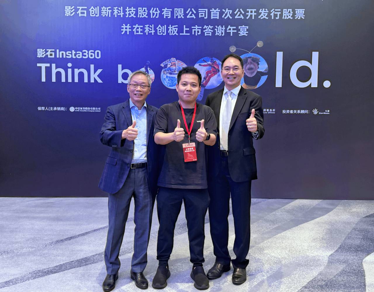 啟明創(chuàng)投創(chuàng)始主管合伙人鄺子平(左)、影石創(chuàng)新創(chuàng)始人兼董事長劉靖康(中)與啟明創(chuàng)投合伙人葉冠泰(右)