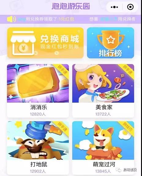 區(qū)別于快手電丸、同桌游戲等主打社交類的小游戲平臺,泡泡游戲強調(diào)的是“輕社交、重對戰(zhàn)”,以游戲本身的樂趣為導向,通過建立對戰(zhàn)游戲矩陣,培養(yǎng)用戶的對戰(zhàn)習慣。此外,消費者也可以通過拉新、獲勝等方式獲得一定量的虛擬貨幣(紅包),用以兌換虛擬或?qū)嶓w的獎品。