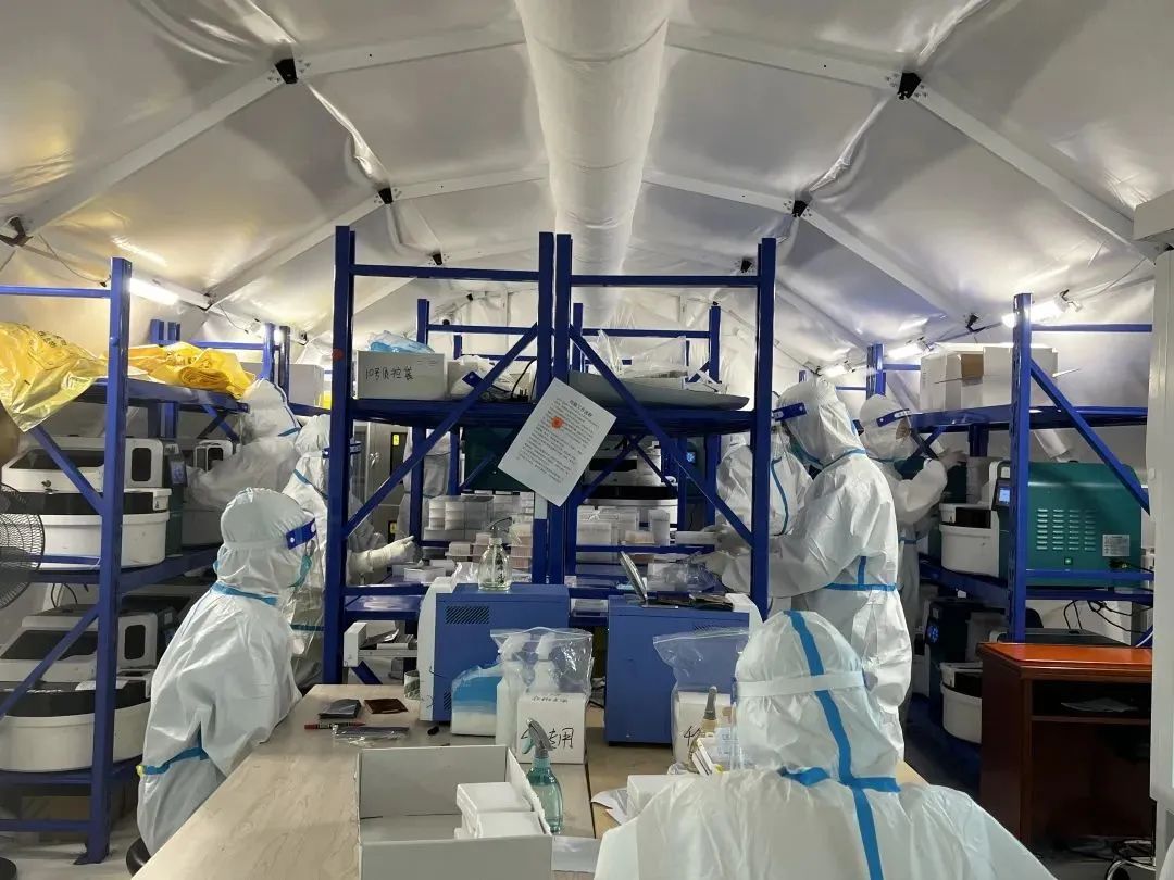 2022年3月以來,上海面臨新冠疫情“倒春寒”式嚴峻考驗。四月初,千麥醫(yī)療馳援上海,在閔行區(qū)建成硬氣膜實驗室。面對與日俱增的核酸檢測繁重任務(wù),廣東省援滬醫(yī)療隊在關(guān)鍵時刻鼎力支援,結(jié)合自身優(yōu)勢持續(xù)改進檢測流程,實驗室樣本處理能力穩(wěn)步提升,不斷刷新記錄。