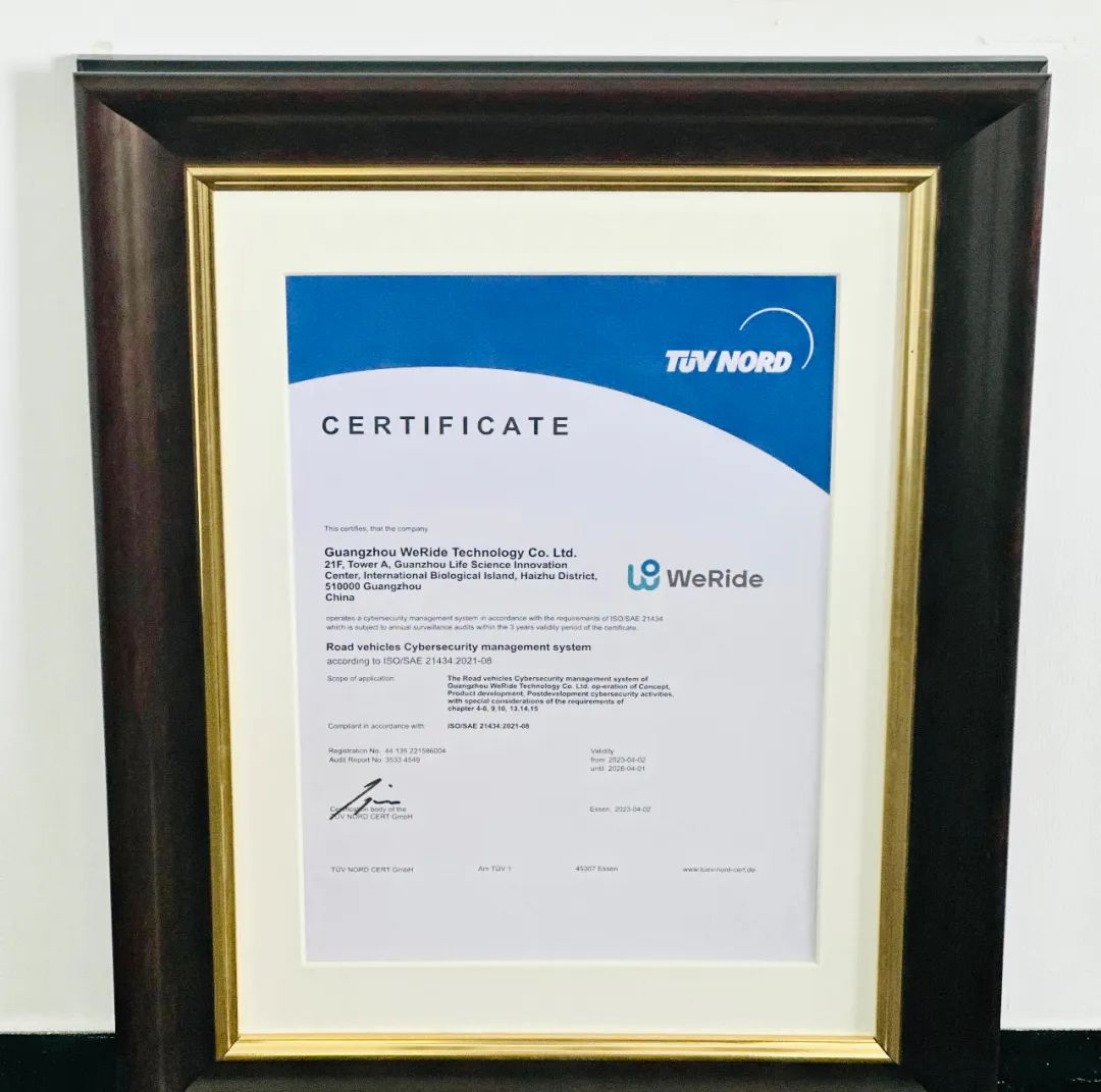 文遠知行通過ISO/SAE 21434認(rèn)證