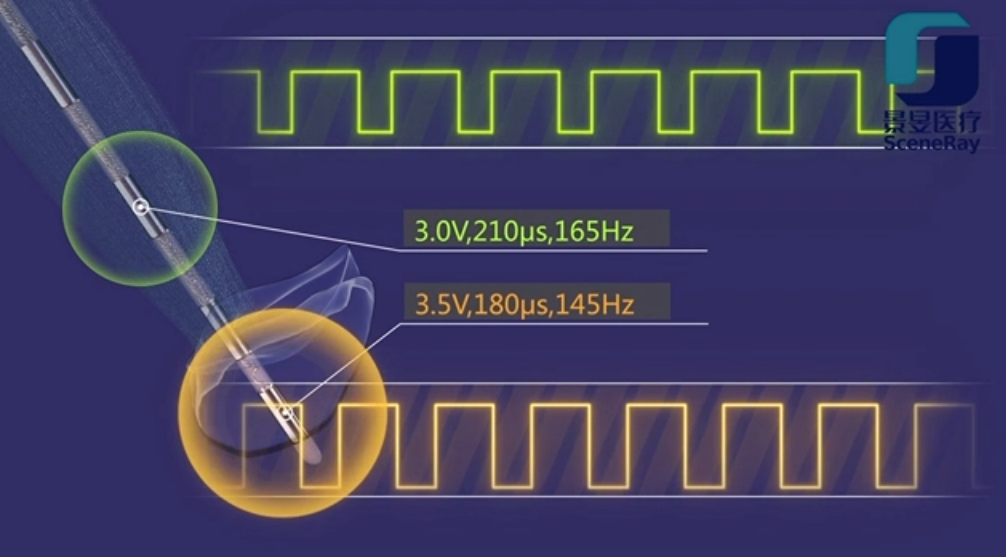 研究團隊在這兩個神經(jīng)核團中分別設計了兩個電極觸點,可以實現(xiàn)同時刺激,更為關(guān)鍵的是,在同一根電極上還能夠輸出兩個完全不同脈沖信號分別進行刺激。