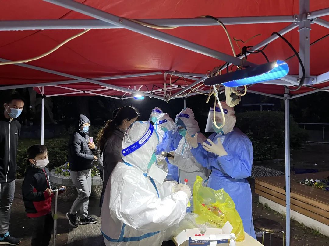 大家與當(dāng)?shù)厣鐓^(qū)醫(yī)院的醫(yī)生護士們一起,為8萬多居民的核酸樣本采集而奔波。上午9時集結(jié)完畢后,她們一直工作到深夜12時30分;在原定結(jié)束時間晚上11時以后,又緊急前往其他社區(qū)支援。