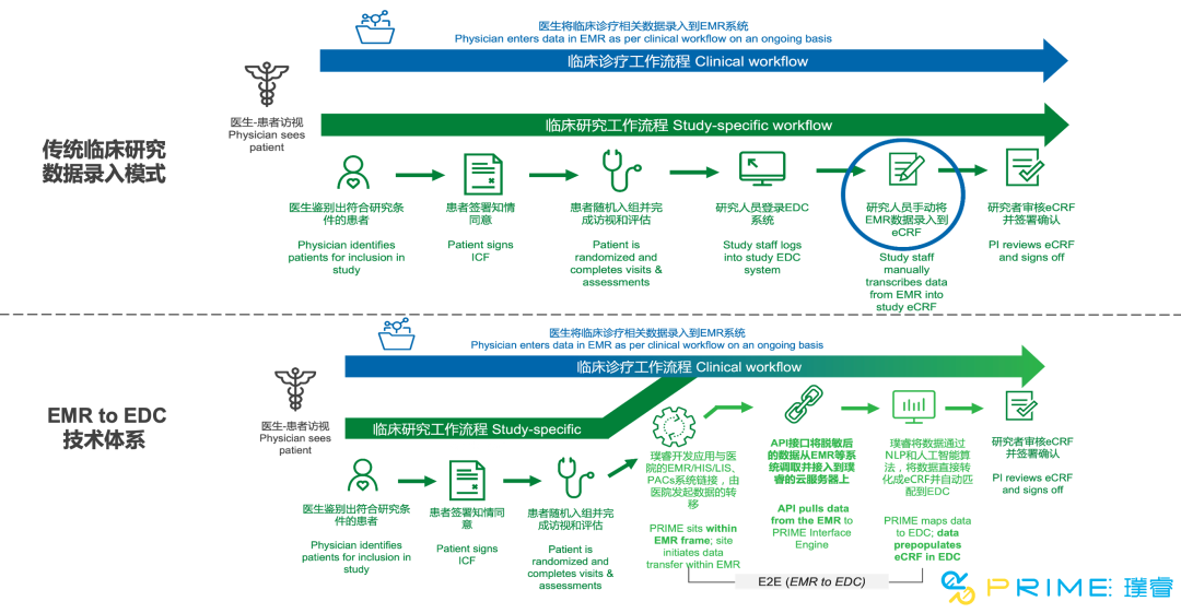 在此背景下,璞睿生命科技利用大數(shù)據(jù)、人工智能等技術(shù),構(gòu)建了全國首個(gè)基于端到端EMR-to-EDC(E2E)電子源數(shù)據(jù)溯源技術(shù)的數(shù)字化臨床研究一體化平臺(tái),覆蓋從上市前研究到上市后研究,從根源上改變臨床診療與研究運(yùn)營的數(shù)據(jù)路徑割裂,將手動(dòng)錄入變?yōu)殡娮踊瘮?shù)據(jù)采集、自動(dòng)化轉(zhuǎn)錄和基于風(fēng)險(xiǎn)的監(jiān)查,能全面提升研究質(zhì)量與效能。