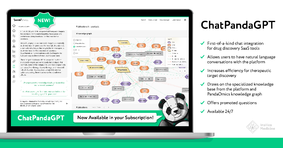 啟明創(chuàng)投投資企業(yè)、致力于將生成式AI技術(shù)應(yīng)用于醫(yī)藥領(lǐng)域的英矽智能也緊隨其后,宣布其自主研發(fā)的人工智能全新靶點(diǎn)發(fā)現(xiàn)平臺PandaOmics新增了ChatPandaGPT功能(AI問答功能)。