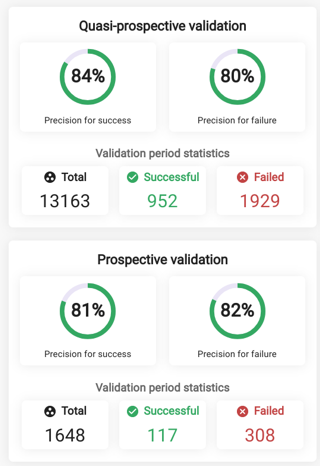 任峰:在inClinico中我們進(jìn)行四種類型的驗(yàn)證:1)回顧性的驗(yàn)證,使用整個(gè)歷史數(shù)據(jù)集中的90%進(jìn)行訓(xùn)練,并將另10%用于測試;2)準(zhǔn)前瞻性驗(yàn)證,使用2018年-2020年的數(shù)據(jù)進(jìn)行訓(xùn)練,使用在2020年以后數(shù)據(jù)進(jìn)行測試;3)前瞻性驗(yàn)證,我們對某些臨床試驗(yàn)展開預(yù)測,并將結(jié)論發(fā)表在預(yù)印本網(wǎng)站上,然后等待該臨床試驗(yàn)得到一個(gè)結(jié)果;4)與制藥公司的合作伙伴進(jìn)行前瞻性研究,這是最困難的一種,你必須和合作伙伴一起等待數(shù)年。而且很多事情都可能出錯(cuò)。在2019年,我們與一家跨國制藥公司進(jìn)行了驗(yàn)證合作。他們在年初制定了10項(xiàng)試驗(yàn),在2020年12月,其中8項(xiàng)試驗(yàn)被準(zhǔn)確預(yù)測。