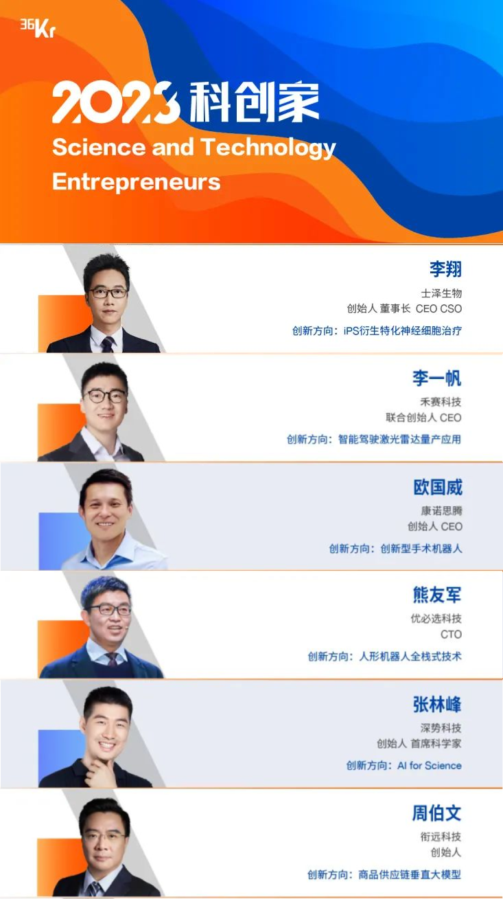 啟明星 | 6位啟明創(chuàng)投投資企業(yè)創(chuàng)始人獲評(píng)36氪2023科創(chuàng)家