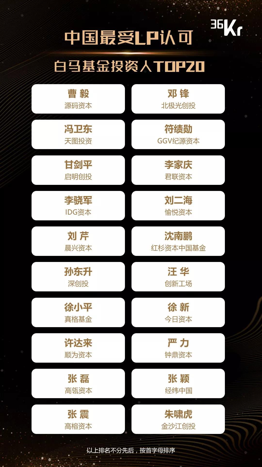 中國最具影響力的新商業(yè)媒體36氪聯(lián)合中國50家頭部母基金,發(fā)布中國創(chuàng)業(yè)投資/私募股權(quán)行業(yè)黑馬獎(jiǎng)和白馬獎(jiǎng)以及有限合伙人獎(jiǎng)項(xiàng)。啟明創(chuàng)投榮獲中國最受LP歡迎創(chuàng)業(yè)投資機(jī)構(gòu)第四名,啟明創(chuàng)投主管合伙人甘劍平獲頒中國最受LP認(rèn)可白馬基金投資人。