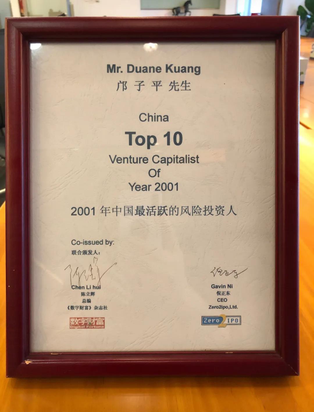 啟明創(chuàng)投創(chuàng)始主管合伙人鄺子平于2001年榮膺清科中國最活躍的風(fēng)險投資人TOP10