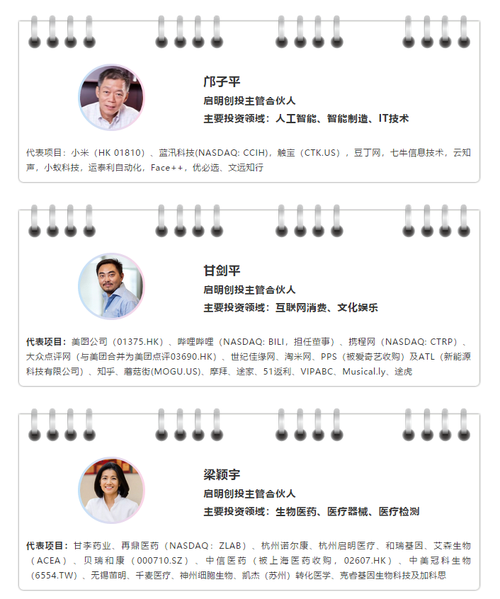 在2018中國(guó)最佳創(chuàng)投人Top100的榜單上,啟明創(chuàng)投共有6位投資人上榜,成為榜單上上榜人數(shù)最多的投資機(jī)構(gòu)。這6位投資人包括:?jiǎn)⒚鲃?chuàng)投主管合伙人鄺子平、甘劍平、梁穎宇和胡旭波,啟明創(chuàng)投合伙人張勇和黃佩華。