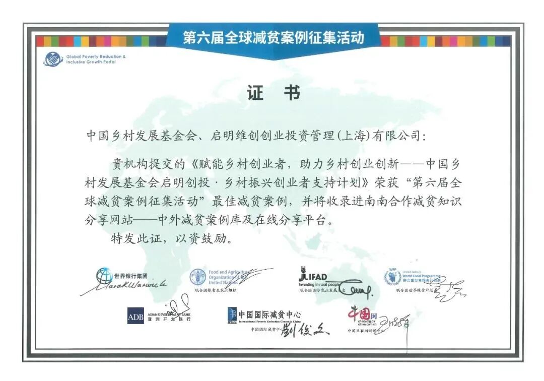 “啟明創(chuàng)投·鄉(xiāng)村振興創(chuàng)業(yè)者支持計劃”將與其他優(yōu)秀案例一起,被收錄進(jìn)南南合作減貧知識分享網(wǎng)站——中外減貧案例庫及在線分享平臺,向世界講述中國鄉(xiāng)村振興的生動故事。